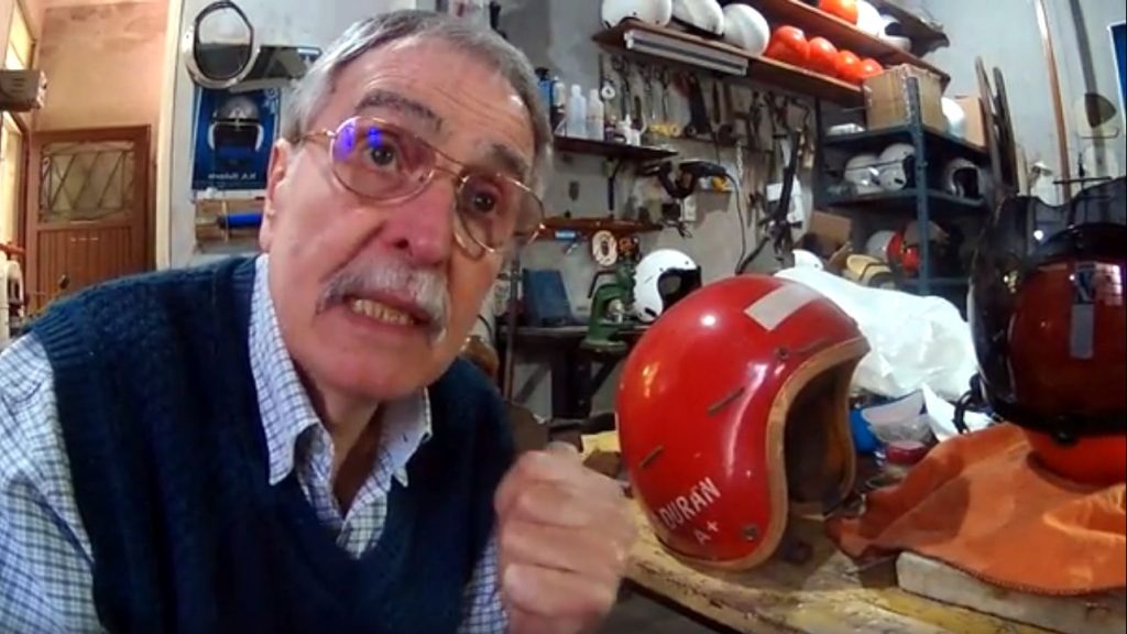 Inspirado en el legado de Cristian Valls: En la foto con el primer casco que elaboró hace 70 años.