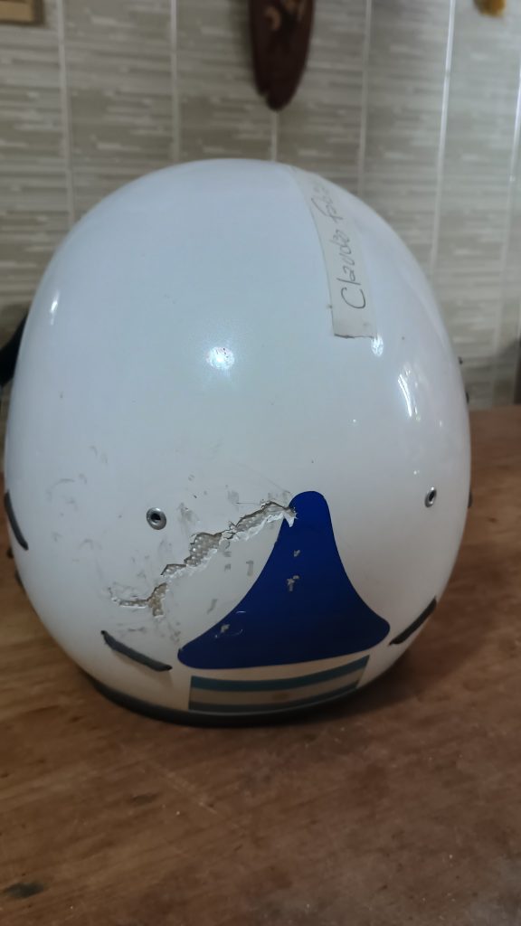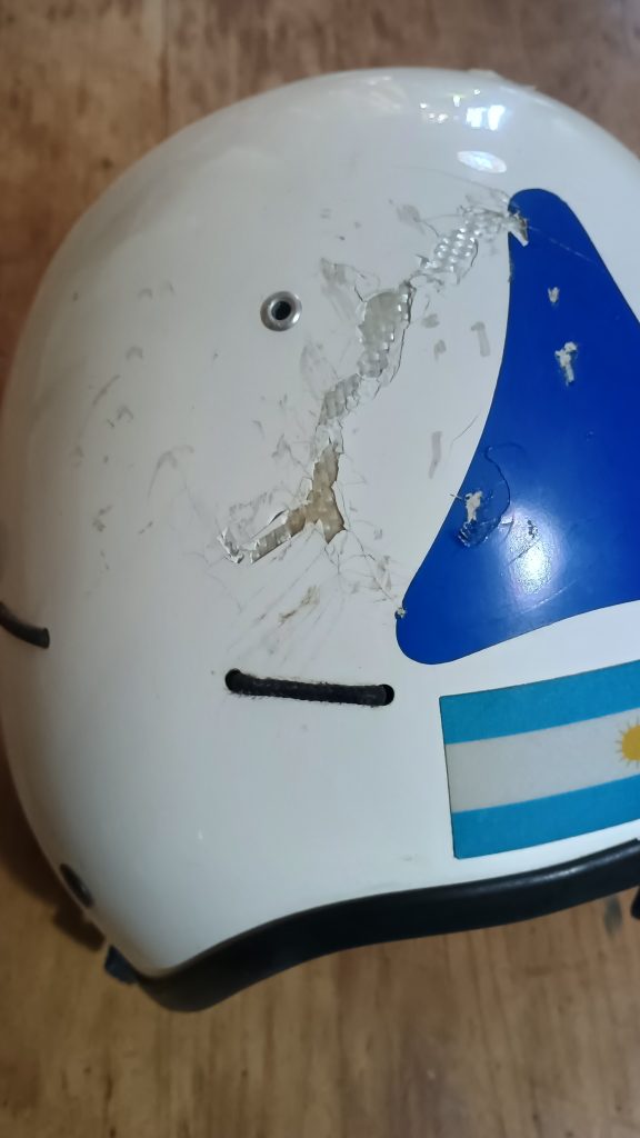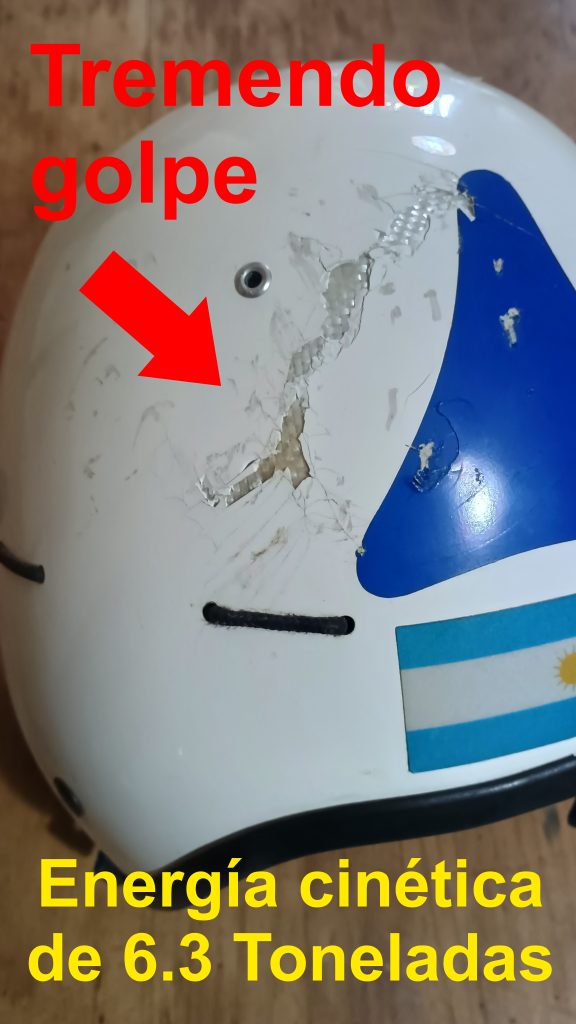 Mientras el impacto intentaba penetrar el casco, el conjunto de calota de Composite con telas especiales fabricadas en exclusiva, las dobles celdas de amortiguación de Poliuretano de Gradiente (PUR/PUSR) y la Suspensión Flotante del NA helmets transformaron ese tremendo golpe seco en calor y flexión elástica. El casco sufrió, pero no se entregó. Una marca elipsoide en la zona temporoparietal quedó como la única cicatriz de guerra de una estructura que se mantuvo íntegra, tal como se ve en las fotografías que acompañan esta nota.